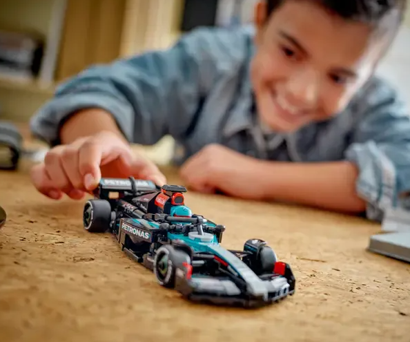 El modelo LEGO® Mercedes es un divertido coche de carreras ideal como regalo para niños y niñas. Imagina cómo sería pilotar un auténtico monoplaza Mercedes de F1. ⚡