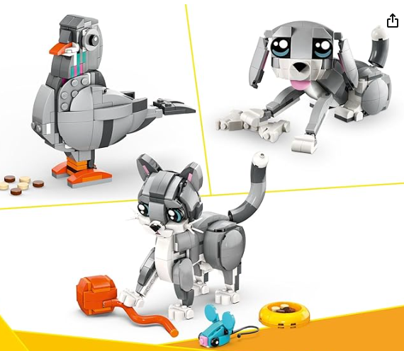 ¡Ideal para los pequeños amantes de las mascotas y la creatividad! El set LEGO Creator 3 en 1 "Gato Juguetón" permite a los niños construir, reconstruir y jugar con tres modelos de animales diferentes a partir de un solo conjunto de ladrillos. ✨
