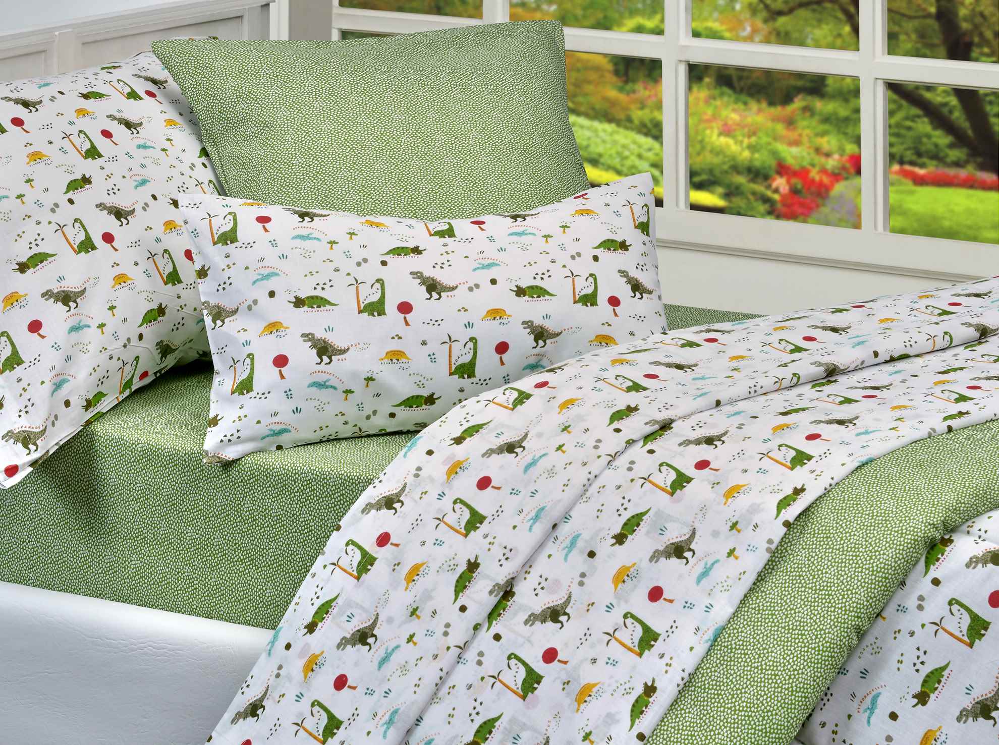 Este set de sabanas esta diseñado para inspirar la imaginación y garantizar un descanso cómodo, es la elección perfecta para la habitación de cualquier amante de los dinosaurios. 🦕💚
