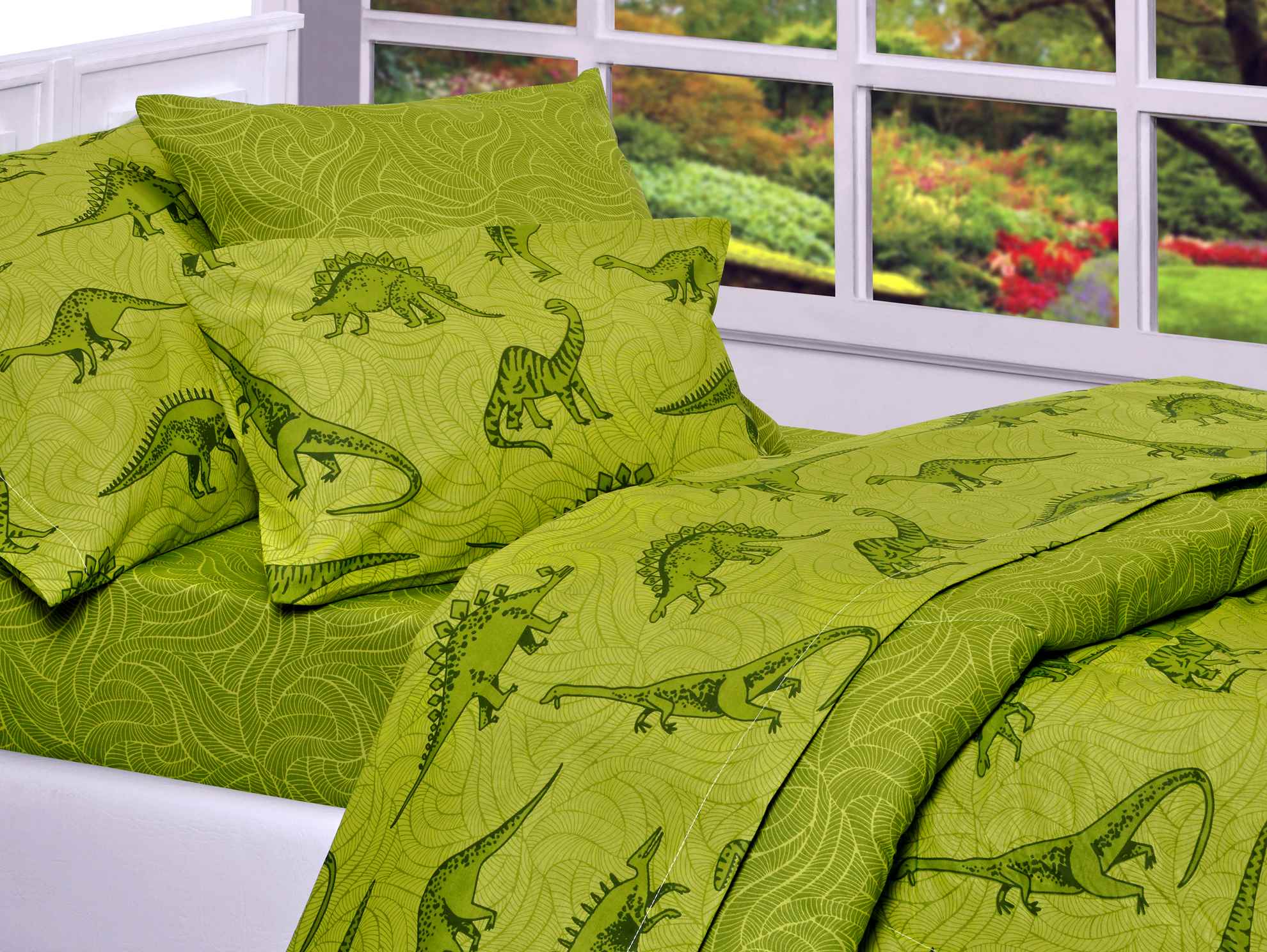 Este set de sabanas esta diseñado para inspirar la imaginación y garantizar un descanso cómodo, es la elección perfecta para la habitación de cualquier amante de los dinosaurios. 🦕💚