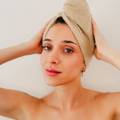 1) Colocar el turbante sobre tu cabeza con el elástico hacia la zona del cuello.2) Enroscar tu pelo con el turbante.3) Insertar el rulo a través del elástico y dejarlo ahí.