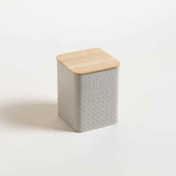 Lata de acero galvanizado color gris con tapa de bamboo.Características:. Medida: 11,5 x 14,5 cm de altura. Material: Acero y Madera de Bamboo. Apto lavavajillas: No. Línea de diseño: Bamboo Grey. Origen: China
