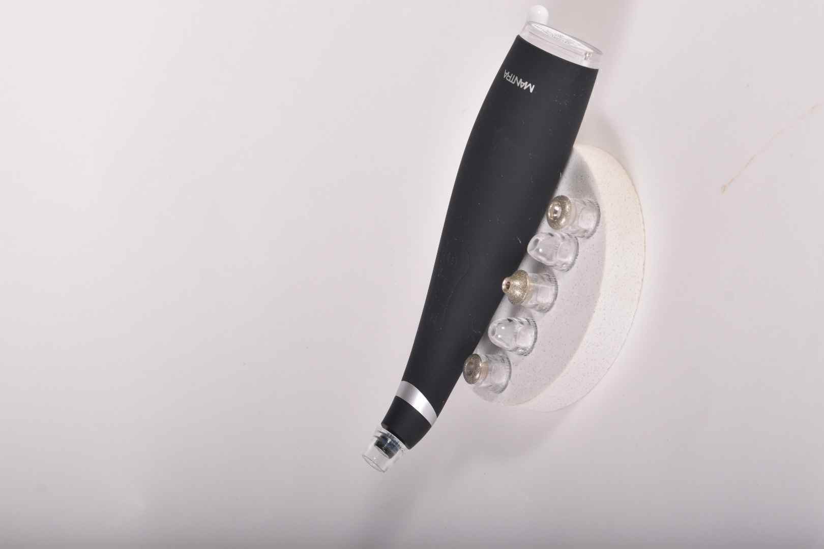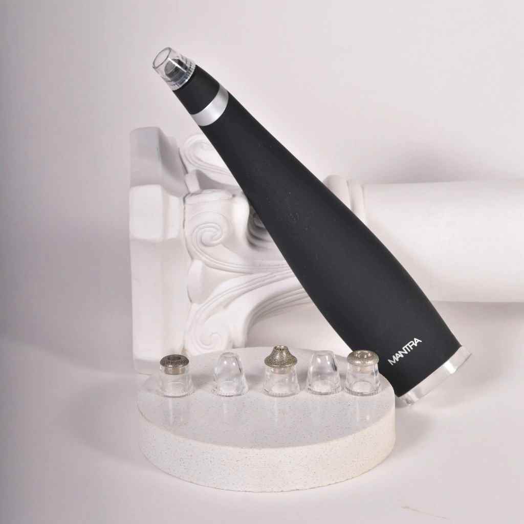 Microdermoabrasión con punta de diamante. Dispositivo de uso doméstico que combina: Micordermoabrasión, tecnología Vacuum con 3 Niveles de intensidad y vibración biomecánica para limpiar los poros en profundidad, promover la estimulación de colágeno, extraer impurezas, puntos negros y células muertas, dando lugar a la regeneración de piel nueva y sana. Incluye 6 cabezales de diferentes tamaños: 3 de punta de diamante + 3 plásticos. Carga USB.
